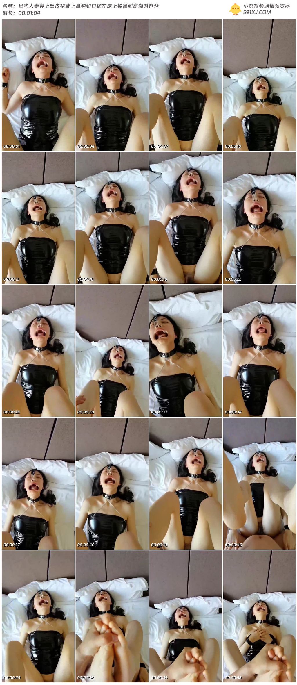母狗人妻穿上黑皮裙戴上鼻钩和口枷在床上被操到高潮叫爸爸