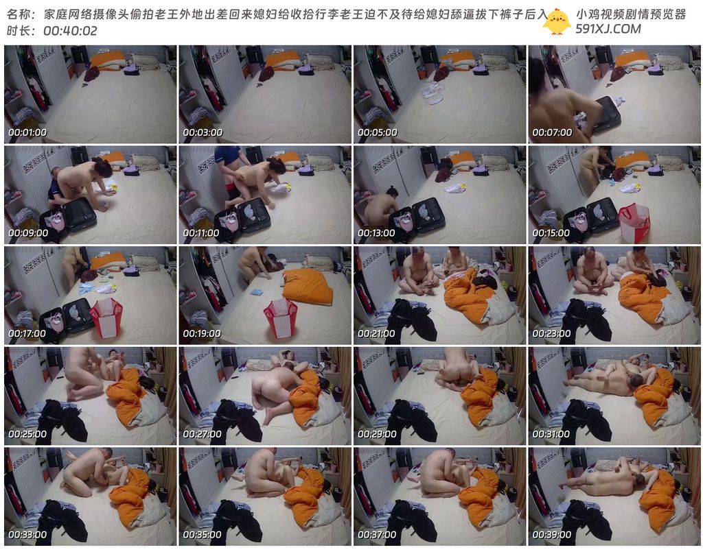 家庭网络摄像头偷拍老王外地出差回来媳妇给收拾行李老王迫不及待给媳妇舔逼拔下裤子后入