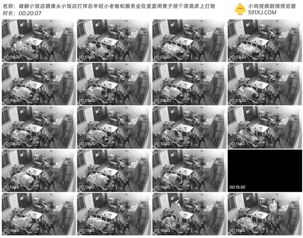 破解小饭店摄像头小饭店打佯后年轻小老板和服务业在里面用凳子搭个简易床上打炮