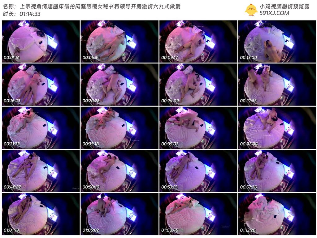 上帝视角情趣圆床偷拍闷骚眼镜女秘书和领导开房激情六九式做爱