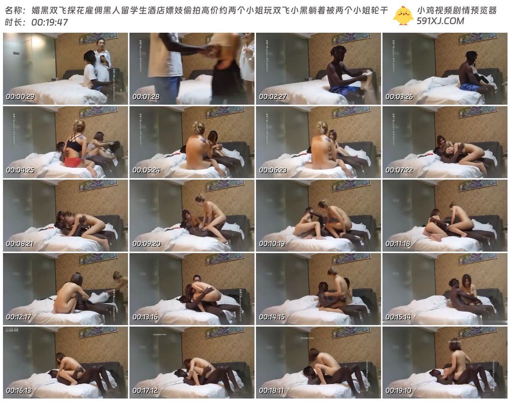媚黑双飞探花雇佣黑人留学生酒店嫖妓偷拍高价约两个小姐玩双飞小黑躺着被两个小姐轮干