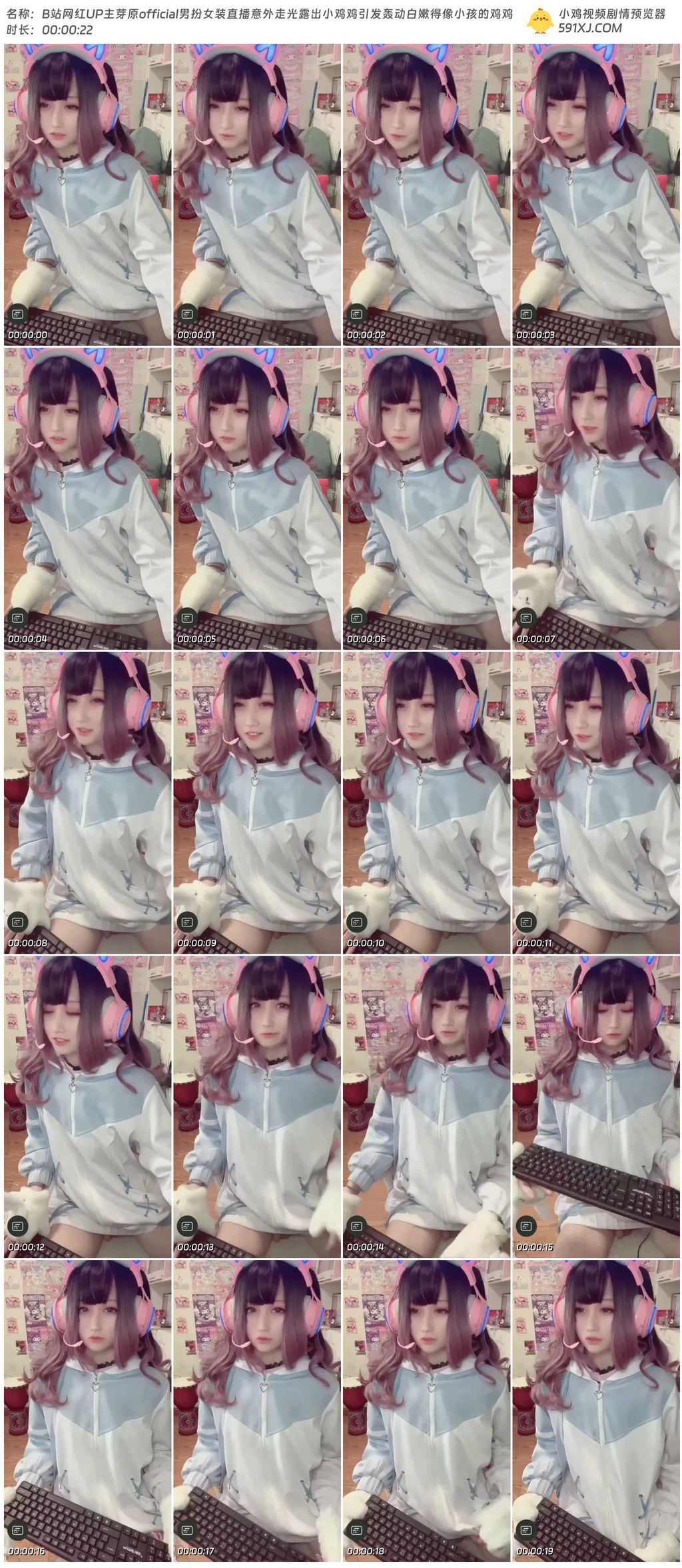 B站网红UP主芽原official男扮女装直播意外走光露出小鸡鸡引发轰动白嫩得像小孩的鸡鸡