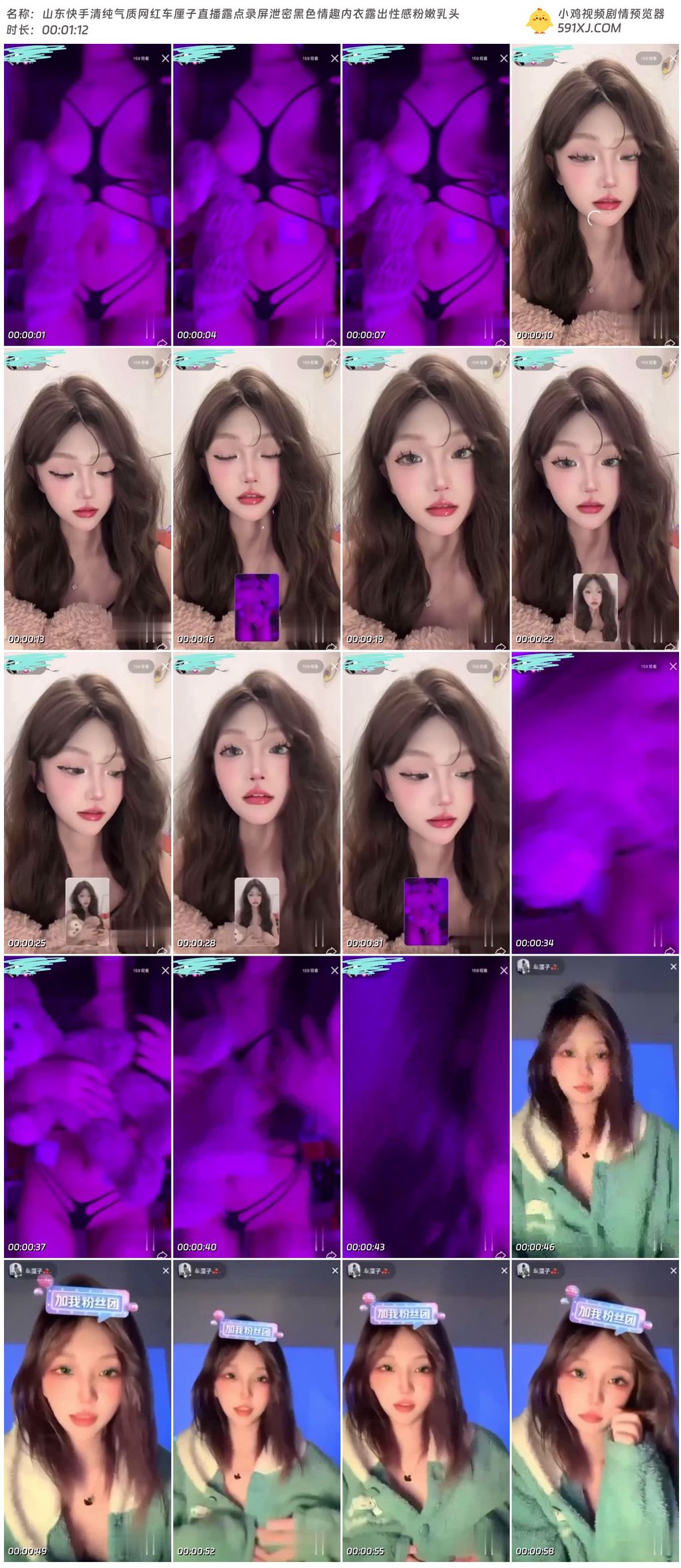 山东快手清纯气质网红车厘子直播露点录屏泄密黑色情趣内衣露出性感粉嫩乳头