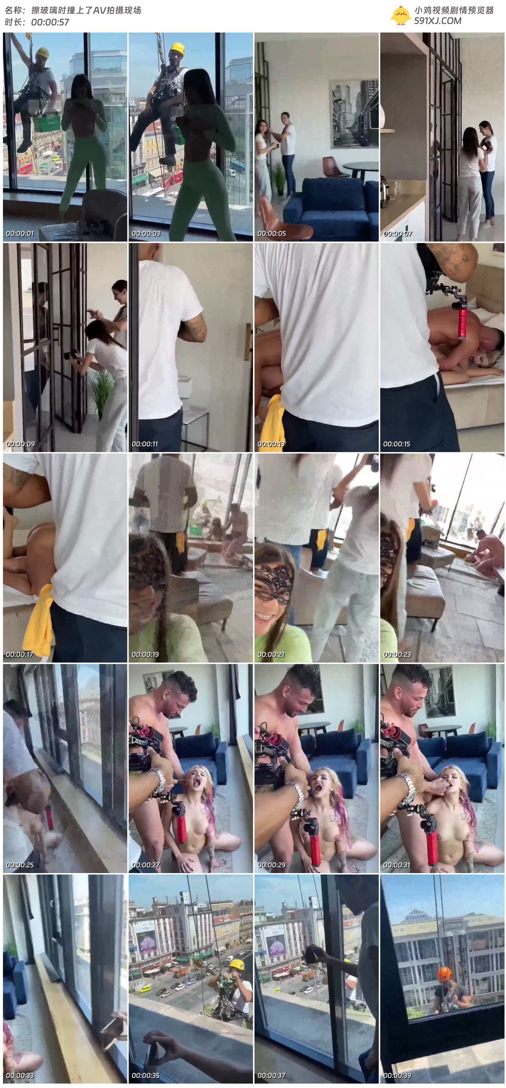 擦玻璃时撞上了AV拍摄现场