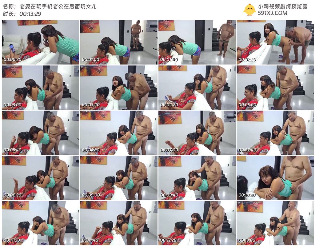 老婆在玩手机老公在后面玩女儿