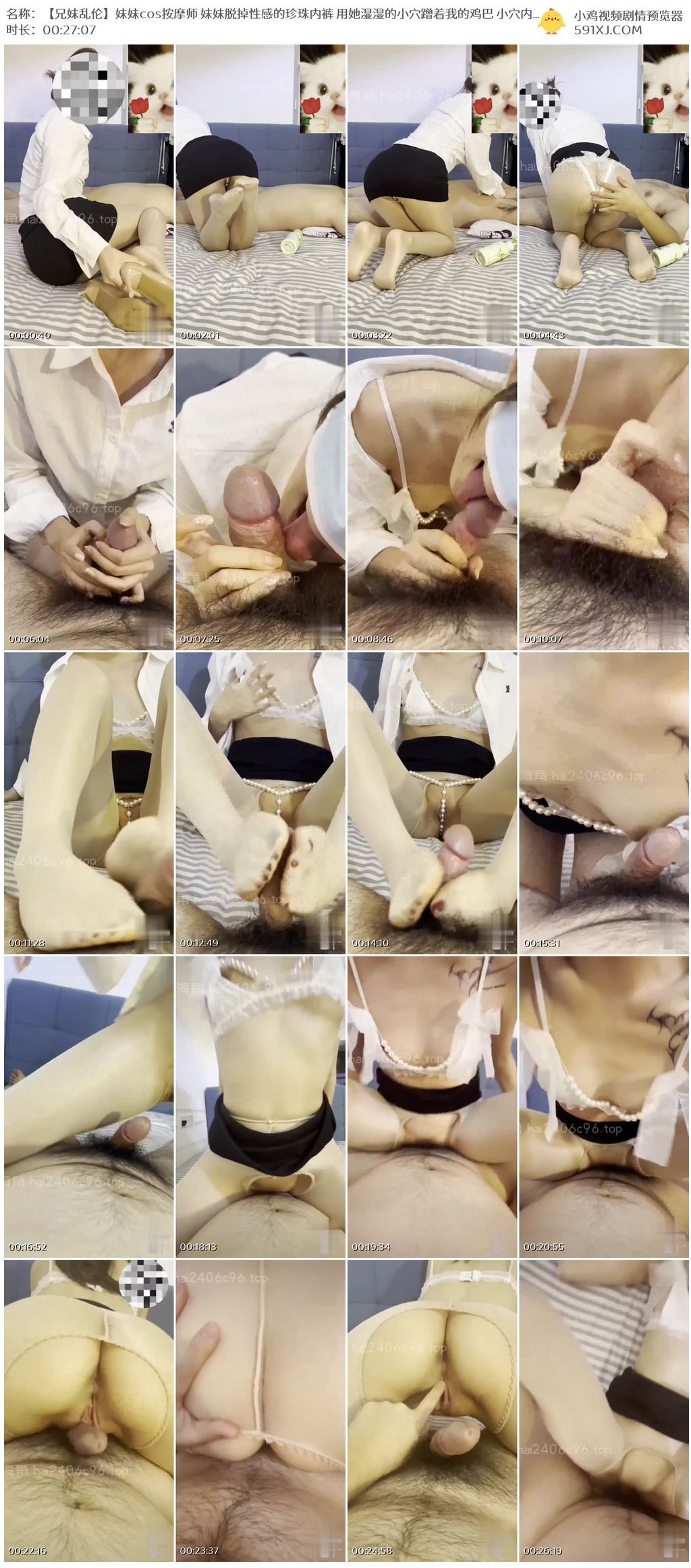 【兄妹乱伦】妹妹cos按摩师 妹妹脱掉性感的珍珠内裤 用她湿湿的小穴蹭着我的鸡巴 小穴内的肉壁贪婪的包裹着我的鸡巴 夹的我舒服的快要射出来了