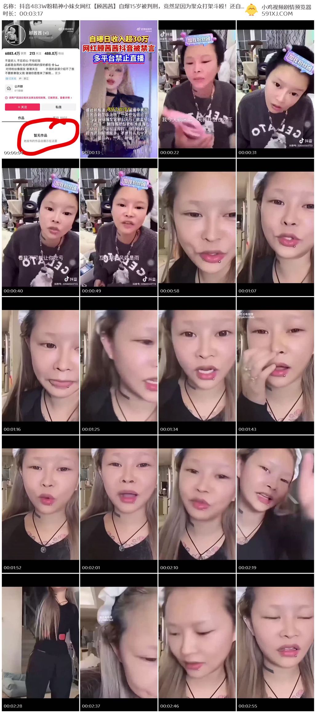 抖音483W粉精神小妹女网红【顾茜茜】自爆15岁被判刑,竟然是因为聚众打架斗殴!还自爆一天收入30W,或许是因为太高调,顾茜茜的账号很快被封号了!