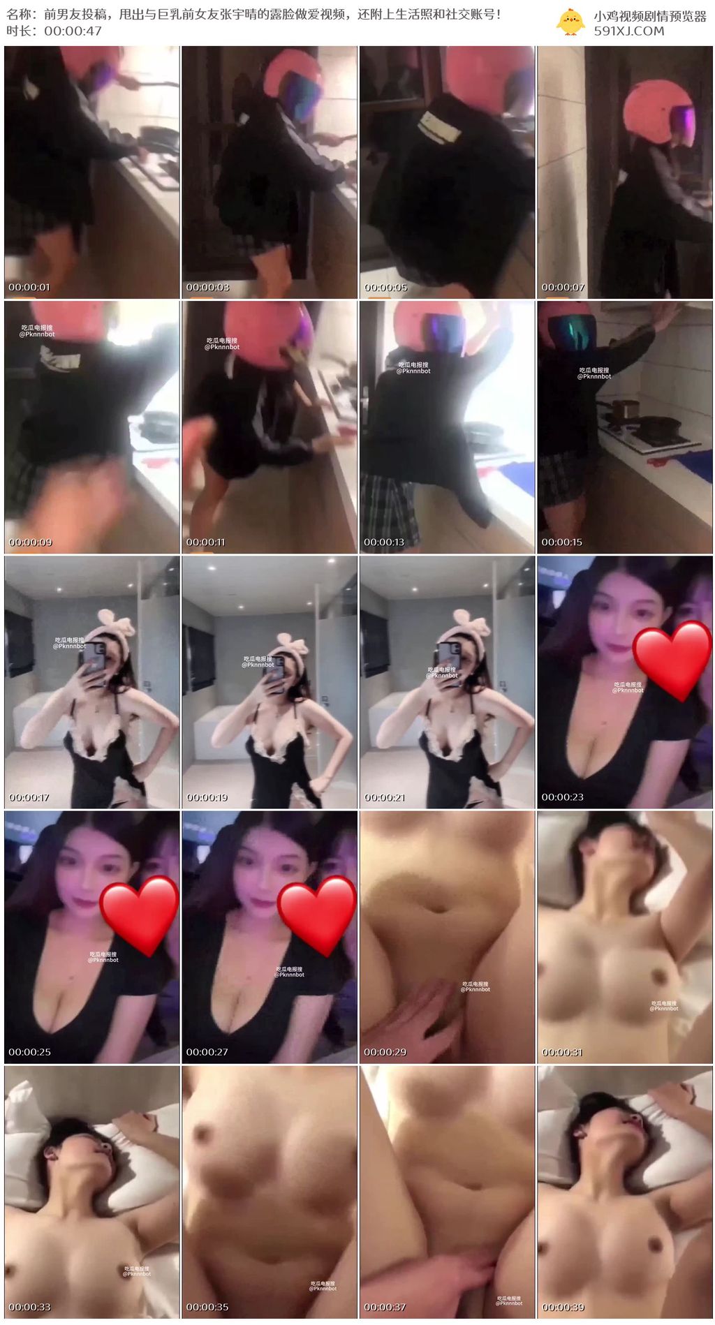 前男友投稿,甩出与巨乳前女友张宇晴的露脸做爱视频,还附上生活照和社交账号!