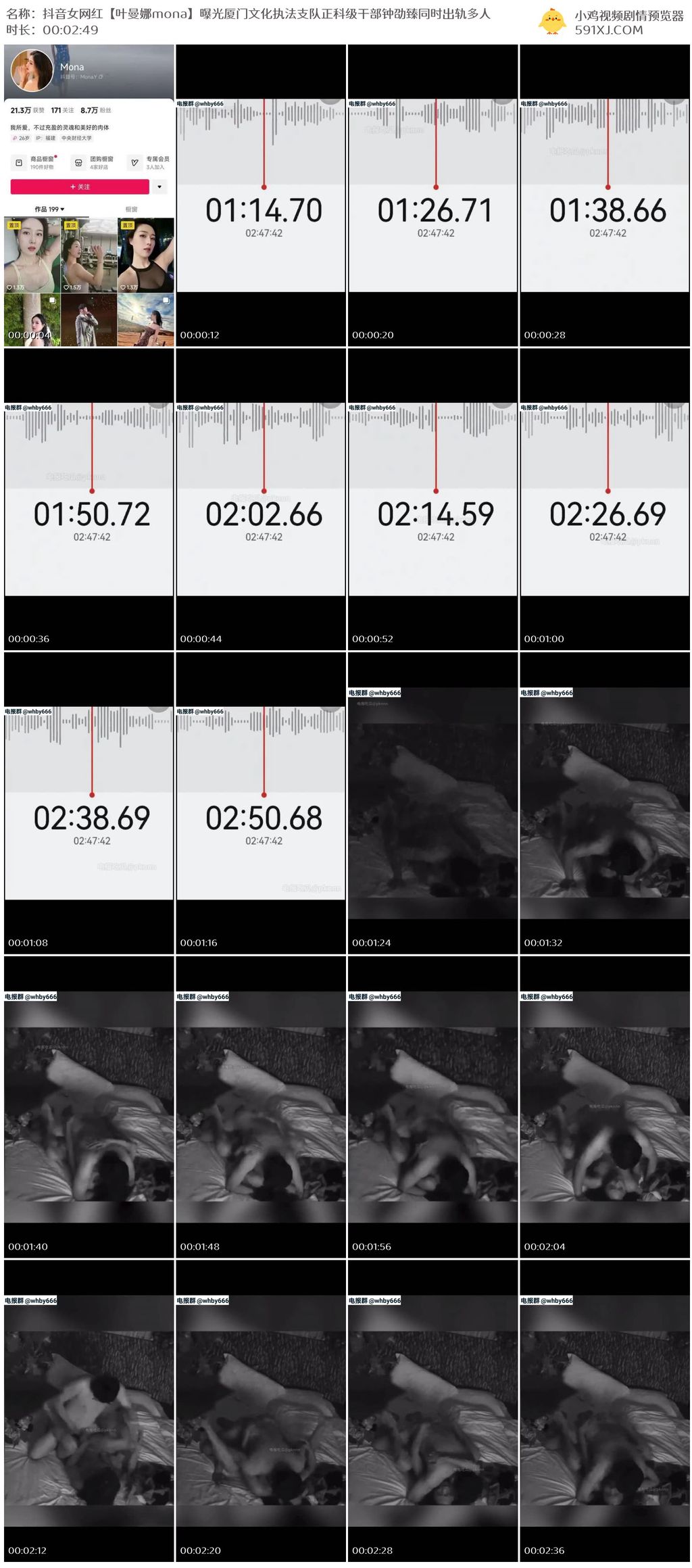 抖音女网红【叶曼娜mona】曝光厦门文化执法支队正科级干部钟劭臻同时出轨多人