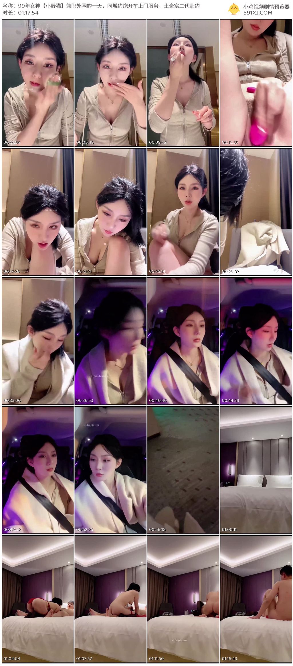 99年女神【小野猫】兼职外围的一天,同城约炮开车上门服务,土豪富二代赴约