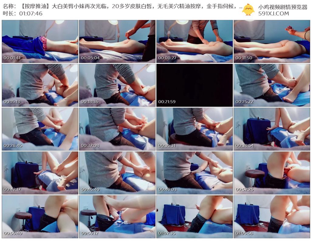【按摩推油】大白美臀小妹再次光临,20多岁皮肤白皙,无毛美穴精油按摩,金手指伺候,按摩床床上爆操
