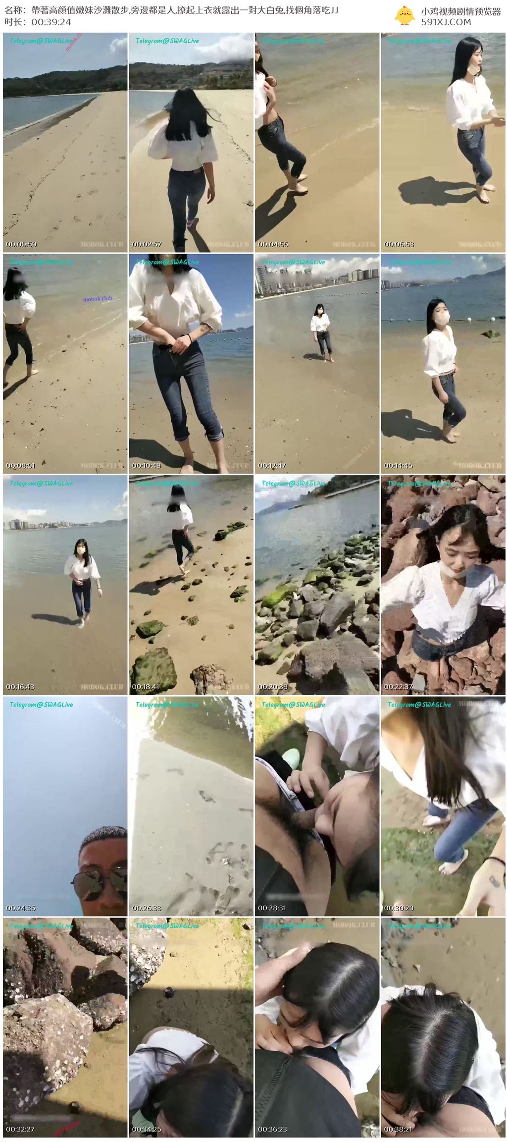 帶著高顔值嫩妹沙灘散步,旁邊都是人,撩起上衣就露出一對大白兔,找個角落吃JJ