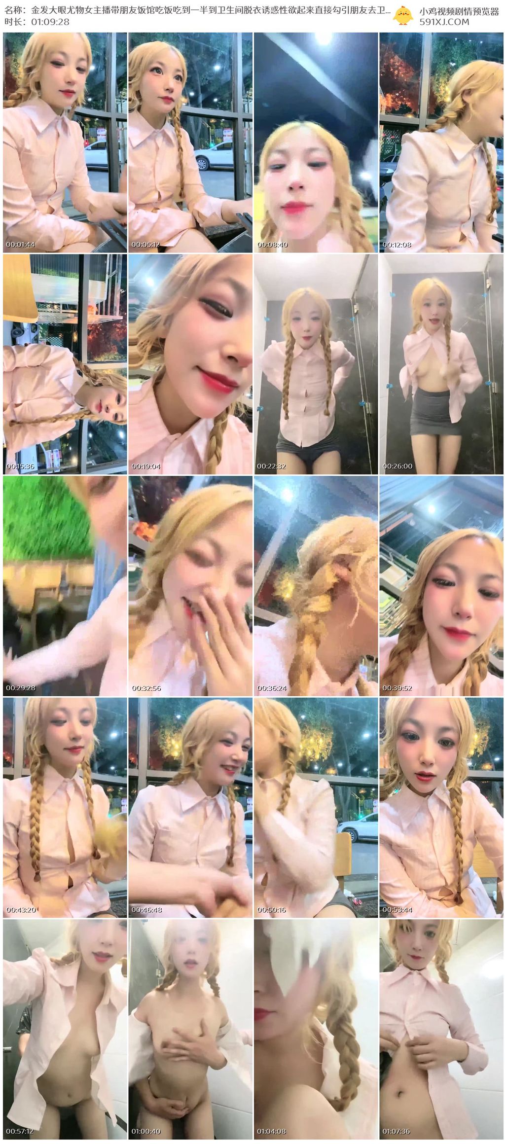 金发大眼尤物女主播带朋友饭馆吃饭吃到一半到卫生间脱衣诱惑性欲起来直接勾引朋友去卫生间啪啪